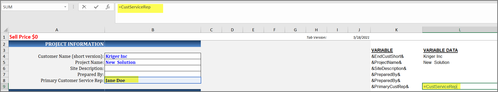 In the figure below we are referencing the Named Range “CustServiceRep” (B7) in the formula for L7.